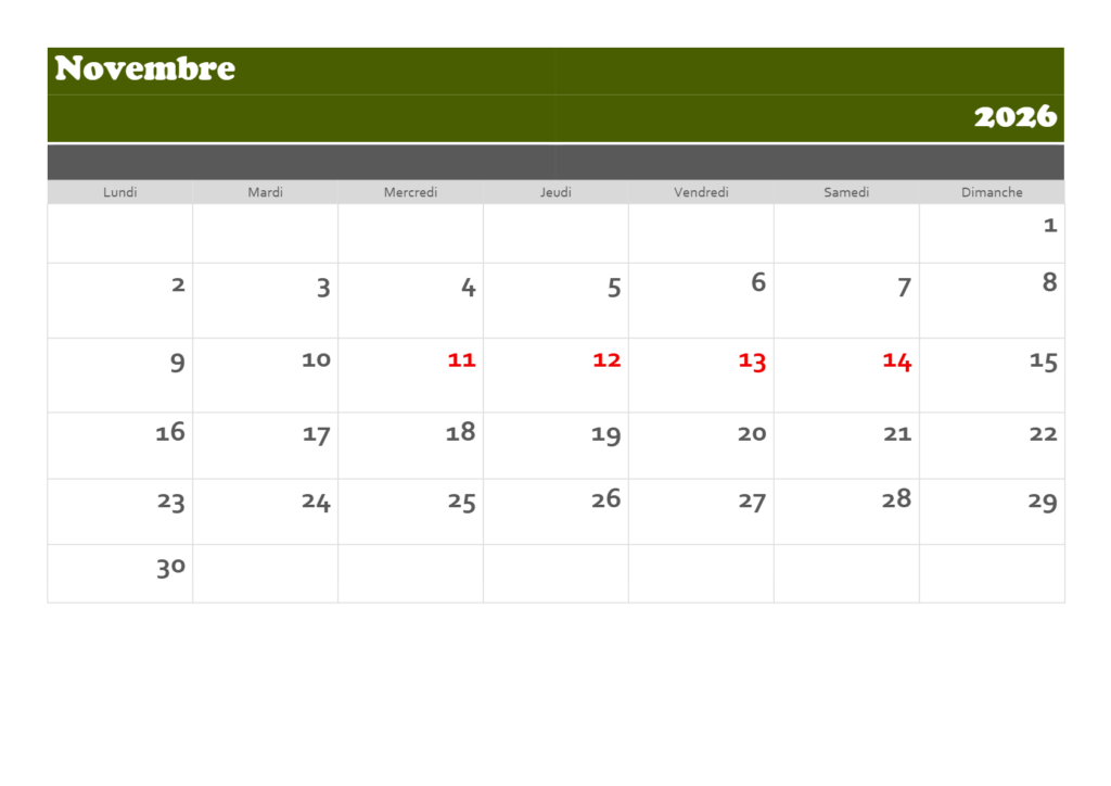 Le domaine est ouvert aux promeneurs entre 08.00 h et 20.00 h à partir du 1er avril 2026, sauf aux dates indiquées en rouge dans les tableaux ci-dessous, correspondant aux journées réservées aux activités cynégétiques. Ces dates sont à respecter strictement dans l’intérêt de la sécurité de tous, à peine de retrait d’autorisation.
